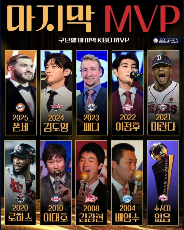 KBO MVP&신인왕 작성자 정보 짭스쪽지보내기 자기소개 아이디로 검색 전체게시물쪽지보내기 자기소개 아이디로 검색 전체게시물 작성 작성일 2025.11.25 00:30 컨텐츠 정보 10 조회 목록 본문 허허.. SNS 공유 신고 짭스쪽지보내기 자기소개 아이디로 검색 전체게시물쪽지보내기 자기소개 아이디로 검색 전체게시물 레벨 96 100% 등록일 00:39 날두&메시 통산스텟 등록일 00:33 KBO 수상내역 등록일 00:30 KBO MVP&신인왕 등록일 11.24 허벅지 씨름 관련자료 댓글 0 등록된 댓글이 없습니다. 로그인한 회원만 댓글 등록이 가능합니다. 목록