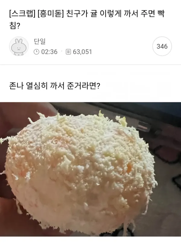 귤을 이렇께 까면? 작성자 정보 짭스쪽지보내기 자기소개 아이디로 검색 전체게시물쪽지보내기 자기소개 아이디로 검색 전체게시물 작성 작성일 2025.11.27 18:38 컨텐츠 정보 16 조회 2 댓글 목록 본문 킹 받음ㅋㅋ SNS 공유 신고 짭스쪽지보내기 자기소개 아이디로 검색 전체게시물쪽지보내기 자기소개 아이디로 검색 전체게시물 레벨 96 100% 등록일 18:46 층간소음 매달200줄게요..ㅡㅡ 댓글 1 등록일 18:38 귤을 이렇께 까면? 댓글 2 등록일 17:23 요즘 군대는 조교들이담배팔아 앵버리하네요 댓글 3 등록일 16:51 착한생각 댓글 1 관련자료 댓글 2 발야구님의 댓글 발야구쪽지보내기 자기소개 아이디로 검색 전체게시물쪽지보내기 자기소개 아이디로 검색 전체게시물 작성일 19:00 까는 기술이 예술이네요~~ 신고 까는 기술이 예술이네요~~ 짭스님의 댓글 짭스쪽지보내기 자기소개 아이디로 검색 전체게시물쪽지보내기 자기소개 아이디로 검색 전체게시물 작성일 19:39 저런씩의귤 간혹 하나씩나오곤 하죠.. 저 귤사이즈는..대략 맛없는 부류..ㅋㅋ 신고 저런씩의귤 간혹 하나씩나오곤 하죠.. 저 귤사이즈는..대략 맛없는 부류..ㅋㅋ 로그인한 회원만 댓글 등록이 가능합니다. 목록