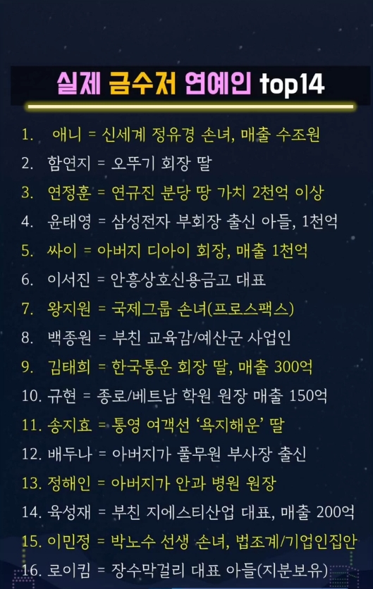 실제 금수저 연예인 top16 작성자 정보 승승장구쪽지보내기 자기소개 아이디로 검색 전체게시물쪽지보내기 자기소개 아이디로 검색 전체게시물 작성 작성일 2025.12.03 17:39 컨텐츠 정보 14 조회 2 댓글 목록 본문 . SNS 공유 신고 승승장구쪽지보내기 자기소개 아이디로 검색 전체게시물쪽지보내기 자기소개 아이디로 검색 전체게시물 레벨 36 99% 등록일 17:42 Ufc전현직 파이터 파이트머니 정리 top10 댓글 1 등록일 17:41 주식 투자로 30억번 사람의 투자조언 10가지 3일 댓글 1 등록일 17:39 실제 금수저 연예인 top16 댓글 2 등록일 17:35 FIFA 국제축구연맹이 2026 북중미 월드컵을 앞두고 비디오 판독(VAR) 시스템 개선을 포함한 여러 축구 규정의 변경을 검토 중이다. 관련자료 댓글 2 승승장구님의 댓글 승승장구쪽지보내기 자기소개 아이디로 검색 전체게시물쪽지보내기 자기소개 아이디로 검색 전체게시물 작성일 17:44 다들 빵빵 하구만.. 신고 다들 빵빵 하구만.. 여시사랑님의 댓글 여시사랑쪽지보내기 자기소개 아이디로 검색 전체게시물쪽지보내기 자기소개 아이디로 검색 전체게시물 작성일 17:45 신고 {emo:onion-045.gif:50} 로그인한 회원만 댓글 등록이 가능합니다. 목록