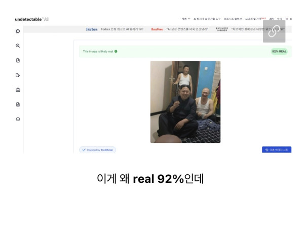 ai 이미지 탐지 사이트를 믿으면 안되는 이유 작성자 정보 아몰랑쪽지보내기 자기소개 아이디로 검색 전체게시물쪽지보내기 자기소개 아이디로 검색 전체게시물 작성 작성일 2025.12.04 12:38 컨텐츠 정보 7 조회 3 댓글 목록 본문 게시판 활동이 적극적이고 지속적이면 레벨업 됩니다.<펌> SNS 공유 신고 아몰랑쪽지보내기 자기소개 아이디로 검색 전체게시물쪽지보내기 자기소개 아이디로 검색 전체게시물 레벨 61 98% 등록일 12:41 횟집 판매 전략 댓글 3 등록일 12:39 집에 빨리 가야돼!~~ 댓글 3 등록일 12:38 ai 이미지 탐지 사이트를 믿으면 안되는 이유 댓글 3 등록일 12.03 어느 교회 1층의 햄버거 가게 댓글 6 관련자료 댓글 3 아몰랑님의 댓글 아몰랑쪽지보내기 자기소개 아이디로 검색 전체게시물쪽지보내기 자기소개 아이디로 검색 전체게시물 작성일 12:39 저 셋이 저렇게 모일리가... 신고 저 셋이 저렇게 모일리가...{emo:onion-001.gif:50} 앙마365님의 댓글 앙마365쪽지보내기 자기소개 아이디로 검색 전체게시물쪽지보내기 자기소개 아이디로 검색 전체게시물 작성일 12:47 신고 {emo:onion-038.gif:50} 발야구님의 댓글 발야구쪽지보내기 자기소개 아이디로 검색 전체게시물쪽지보내기 자기소개 아이디로 검색 전체게시물 작성일 13:11 합성 기술이 좋아서~~ 신고 합성 기술이 좋아서~~ 로그인한 회원만 댓글 등록이 가능합니다. 목록