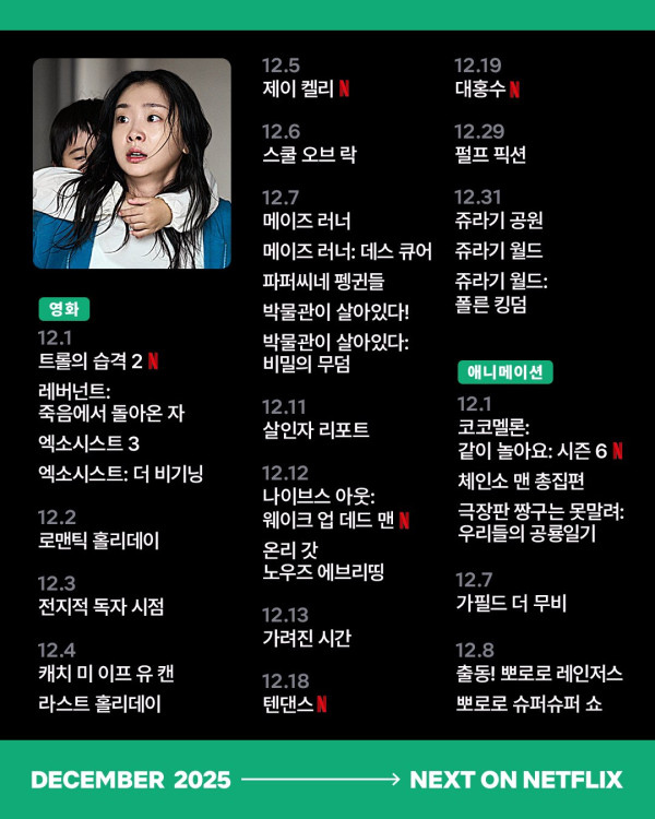 넷플릭스 12월 신작 라인업 작성자 정보 012oppaㅡ문스타쪽지보내기 자기소개 아이디로 검색 전체게시물쪽지보내기 자기소개 아이디로 검색 전체게시물 작성 작성일 2025.12.05 12:28 컨텐츠 정보 8 조회 3 댓글 목록 본문 s SNS 공유 신고 012oppaㅡ문스타쪽지보내기 자기소개 아이디로 검색 전체게시물쪽지보내기 자기소개 아이디로 검색 전체게시물 레벨 96 100% 등록일 12:29 아줌마가 알려주는 아가씨 아줌마 구별법 댓글 2 등록일 12:28 가장 효과적인 영양제 섭취시간 댓글 2 등록일 12:28 넷플릭스 12월 신작 라인업 댓글 3 등록일 12.04 집에서 쫓겨난 딸 댓글 6 관련자료 댓글 3 012oppaㅡ문스타님의 댓글 012oppaㅡ문스타쪽지보내기 자기소개 아이디로 검색 전체게시물쪽지보내기 자기소개 아이디로 검색 전체게시물 작성일 12:28 신고 {emo:onion-028.gif:50} 승승장구님의 댓글 승승장구쪽지보내기 자기소개 아이디로 검색 전체게시물쪽지보내기 자기소개 아이디로 검색 전체게시물 작성일 12:57 오호 몇개는 킵하겠습니다 신고 오호 몇개는 킵하겠습니다 여시사랑님의 댓글 여시사랑쪽지보내기 자기소개 아이디로 검색 전체게시물쪽지보내기 자기소개 아이디로 검색 전체게시물 작성일 13:34 신고 {emo:onion-070.gif:50} 로그인한 회원만 댓글 등록이 가능합니다. 목록