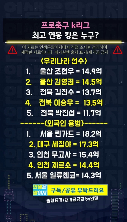 프로축구 k리그 연봉 1위~5위는 누구? 1일 작성자 정보 승승장구쪽지보내기 자기소개 아이디로 검색 전체게시물쪽지보내기 자기소개 아이디로 검색 전체게시물 작성 작성일 2025.12.06 15:46 컨텐츠 정보 7 조회 목록 본문 . SNS 공유 신고 승승장구쪽지보내기 자기소개 아이디로 검색 전체게시물쪽지보내기 자기소개 아이디로 검색 전체게시물 레벨 41 99% 등록일 15:48 1순위 주인공이 아니었지만 대타로 들어가 영화/드라마 대박난 배우 등록일 15:46 프로축구 k리그 연봉 1위~5위는 누구? 1일 등록일 15:43 출석! 등록일 12.05 2025 골든글러브 D-4 댓글 2 관련자료 댓글 0 등록된 댓글이 없습니다. 로그인한 회원만 댓글 등록이 가능합니다. 목록