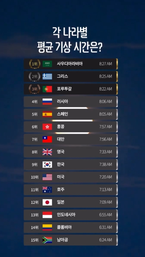• 세계에서 가장 늦게 일어나는 나라
