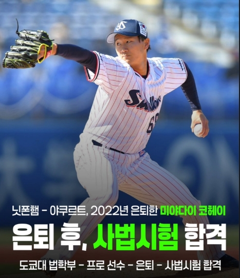 닛폰햄, 야쿠르트에서 뛰고 22년을 끝으로 현역에서 은퇴한 미야다이 코헤이(30) 씨가 사법시험에 단번에 합격한 것으로 지난달 12일 밝혀졌다.