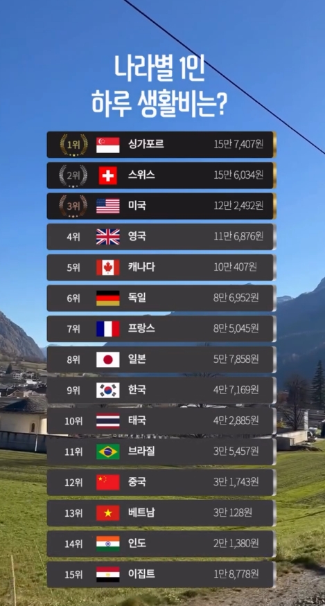 1인 하루 생활비는 그 나라의 경제력과 삶의 질을 동시에 반영합니다.