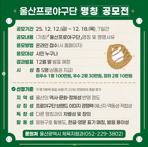 KBO 퓨처스리그 울산프로야구단(가칭) 명칭 공모