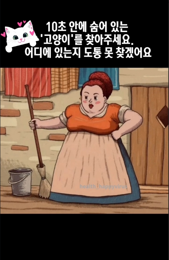 10초 안에 숨어 있는 고양이 찾기 작성자 정보 승승장구쪽지보내기 자기소개 아이디로 검색 전체게시물쪽지보내기 자기소개 아이디로 검색 전체게시물 작성 작성일 2025.12.14 22:46 컨텐츠 정보 13 조회 1 댓글 목록 본문 게시판 활동이 적극적이고 지속적이면 레벨업 됩니다. SNS 공유 신고 승승장구쪽지보내기 자기소개 아이디로 검색 전체게시물쪽지보내기 자기소개 아이디로 검색 전체게시물 레벨 87 98% 등록일 12.14 스트레스 체크! 지금 내 상태는? 댓글 1 등록일 12.14 여드름, 부위마다 원인이 다르다? 단순 피부 문제가 아닐 수 있어요! 댓글 1 등록일 12.14 10초 안에 숨어 있는 고양이 찾기 댓글 1 등록일 12.14 오늘의 기분에 오늘의 차를 골라보세요. 댓글 1 관련자료 댓글 1 발야구님의 댓글 발야구쪽지보내기 자기소개 아이디로 검색 전체게시물쪽지보내기 자기소개 아이디로 검색 전체게시물 작성일 05:11 엥,, 10초 안에?? 포기~~ 신고 엥,, 10초 안에?? 포기~~ 로그인한 회원만 댓글 등록이 가능합니다. 목록