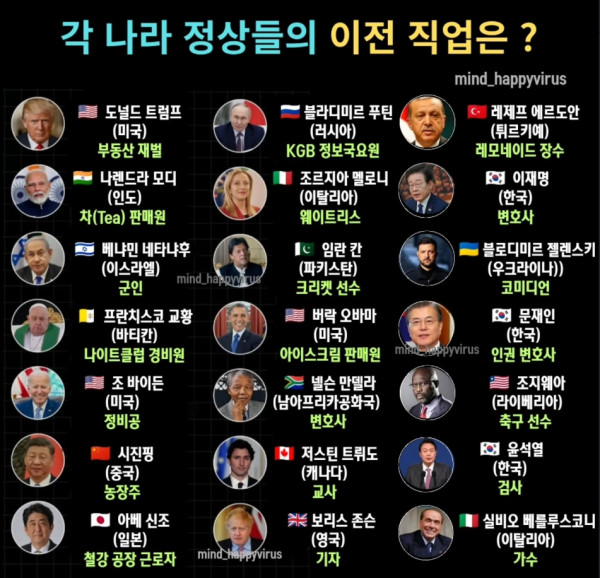 정상들의 과거 직업을 보면 인생은 정말 어디로 흘러갈지 모릅니다. 작성자 정보 승승장구쪽지보내기 자기소개 아이디로 검색 전체게시물쪽지보내기 자기소개 아이디로 검색 전체게시물 작성 작성일 2025.12.16 19:47 컨텐츠 정보 10 조회 목록 본문 게시판 활동이 적극적이고 지속적이면 레벨업 됩니다. SNS 공유 신고 승승장구쪽지보내기 자기소개 아이디로 검색 전체게시물쪽지보내기 자기소개 아이디로 검색 전체게시물 레벨 96 100% 등록일 19:51 의사들이 경고한 치명적인 습관 10가지 댓글 1 등록일 19:50 그때 투자했다면 지금은 인생이 달라졌을지도~~ 등록일 19:48 조용해 보인다고 모르는 게 아니다. 진짜는 말보다 관찰하고 움직인다. 등록일 19:47 정상들의 과거 직업을 보면 인생은 정말 어디로 흘러갈지 모릅니다. 관련자료 댓글 0 등록된 댓글이 없습니다. 로그인한 회원만 댓글 등록이 가능합니다. 목록