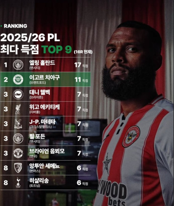 이번 시즌 프리미어리그 최고의 깜짝 스타는? 작성자 정보 승승장구쪽지보내기 자기소개 아이디로 검색 전체게시물쪽지보내기 자기소개 아이디로 검색 전체게시물 작성 작성일 2025.12.18 13:12 컨텐츠 정보 14 조회 1 댓글 목록 본문 게시판 활동이 적극적이고 지속적이면 레벨업 됩니다. SNS 공유 신고 승승장구쪽지보내기 자기소개 아이디로 검색 전체게시물쪽지보내기 자기소개 아이디로 검색 전체게시물 레벨 96 100% 등록일 20:23 [설영우] 즈베즈다???????? → 마인츠???????? ????? 등록일 20:20 찢어지게 가난 했던 흙수저 였지만 이겨내고 성공한 연예인 top12 등록일 20:18 레전드 한자리 사진ai 등록일 20:15 2026시즌 LG 트윈스 보류선수 명단 관련자료 댓글 1 앙마365님의 댓글 앙마365쪽지보내기 자기소개 아이디로 검색 전체게시물쪽지보내기 자기소개 아이디로 검색 전체게시물 작성일 13:57 하위팀 스트라이커는 몰빵이라.. 골결만 좋으면 스트라이커 차지 하기 좋지..ㅋㅋㅋ 신고 하위팀 스트라이커는 몰빵이라.. 골결만 좋으면 스트라이커 차지 하기 좋지..ㅋㅋㅋ 로그인한 회원만 댓글 등록이 가능합니다. 목록