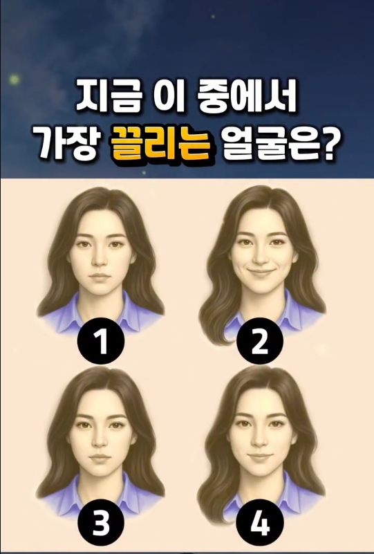 ????1. 꾸밈없이 자연스러운 분위기에 끌리는 당신은 진정성과 편안함을 중요하게 여깁니다. 화려한 자극보다 마음의 평화를 우선하며, 감정적으로 부드럽고 안정적인 사람에게 호감을 느끼는 경향이 있습니다. 솔직함을 가치 있게 여기며 담백한 관계를 선호하는 타입입니다.