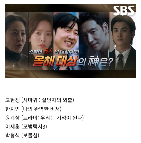 2025년 SBS 연기대상 후보 5인 작성자 정보 012oppaㅡ문스타쪽지보내기 자기소개 아이디로 검색 전체게시물쪽지보내기 자기소개 아이디로 검색 전체게시물 작성 작성일 2025.12.23 10:15 컨텐츠 정보 22 조회 1 댓글 0 추천 목록 본문 s 0 추천 SNS 공유 신고 012oppaㅡ문스타쪽지보내기 자기소개 아이디로 검색 전체게시물쪽지보내기 자기소개 아이디로 검색 전체게시물 레벨 96 100% 등록일 10:15 2025년 SBS 연기대상 후보 5인 댓글 1 등록일 12.22 회사에서 살아남는 말투 10가지 댓글 1 등록일 12.21 회사에서 살아남는 말투 10가지 댓글 1 등록일 12.20 하루만 밤 새도 우리 몸에서 일어난다는 일 댓글 1 관련자료 댓글 1 012oppaㅡ문스타님의 댓글 012oppaㅡ문스타쪽지보내기 자기소개 아이디로 검색 전체게시물쪽지보내기 자기소개 아이디로 검색 전체게시물 작성일 10:15 신고 {emo:onion-028.gif:50} 로그인한 회원만 댓글 등록이 가능합니다. 목록