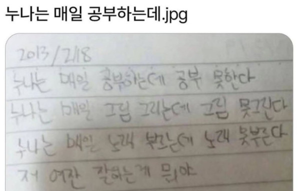 매일 공부하는데.. 작성자 정보 데굴데굴쪽지보내기 메일보내기 자기소개 아이디로 검색 전체게시물쪽지보내기 메일보내기 자기소개 아이디로 검색 전체게시물 작성 작성일 2026.01.03 22:30 컨텐츠 정보 83 조회 2 댓글 0 추천 목록 본문 [펌] 0 추천 SNS 공유 신고 데굴데굴쪽지보내기 메일보내기 자기소개 아이디로 검색 전체게시물쪽지보내기 메일보내기 자기소개 아이디로 검색 전체게시물 레벨 96 100% 등록일 01.04 차에서 사람 응가 표시가... 등록일 01.03 매일 공부하는데.. 댓글 2 등록일 01.02 탕수육에서 푸들 나옴 댓글 1 등록일 01.01 여친이 운동 안간대 댓글 4 관련자료 댓글 2 데굴데굴님의 댓글 데굴데굴쪽지보내기 메일보내기 자기소개 아이디로 검색 전체게시물쪽지보내기 메일보내기 자기소개 아이디로 검색 전체게시물 작성일 01.03 22:35 누나한테 왜 그래~^^ 신고 누나한테 왜 그래~^^ 호돌이님의 댓글 호돌이쪽지보내기 자기소개 아이디로 검색 전체게시물쪽지보내기 자기소개 아이디로 검색 전체게시물 작성일 01:55 진짜 왜저러는 걸까요? 신고 진짜 왜저러는 걸까요? 로그인한 회원만 댓글 등록이 가능합니다. 목록