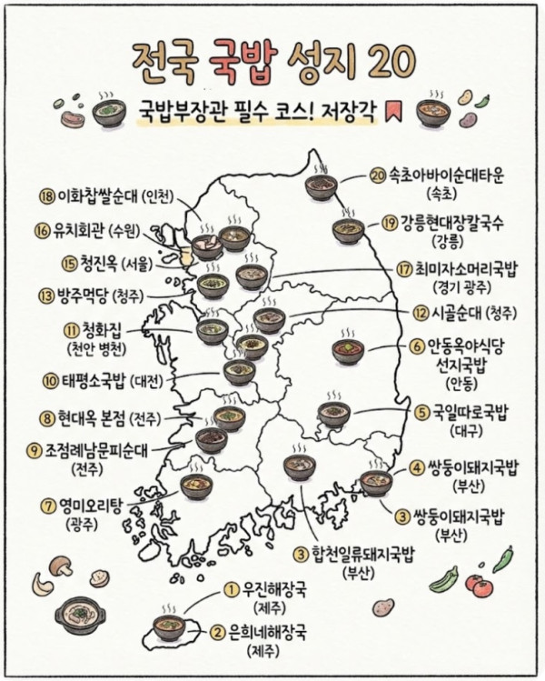 날씨도 추운데 국밥 한그릇 ! 전국 국밥 성지 20곳 작성자 정보 승승장구쪽지보내기 자기소개 아이디로 검색 전체게시물쪽지보내기 자기소개 아이디로 검색 전체게시물 작성 작성일 2026.01.22 10:21 컨텐츠 정보 24 조회 2 댓글 0 추천 목록 본문 . 0 추천 SNS 공유 신고 승승장구쪽지보내기 자기소개 아이디로 검색 전체게시물쪽지보내기 자기소개 아이디로 검색 전체게시물 레벨 96 100% 등록일 10:21 날씨도 추운데 국밥 한그릇 ! 전국 국밥 성지 20곳 댓글 2 등록일 01.21 발이 알려주는 건강신호! 댓글 1 등록일 01.20 사실은 국산 브랜드 TOP 10 등록일 01.19 아프리카 네이션스컵 우승팀은 !? 관련자료 댓글 2 순돌이님의 댓글 순돌이쪽지보내기 자기소개 아이디로 검색 전체게시물쪽지보내기 자기소개 아이디로 검색 전체게시물 작성일 12:13 한국은 먹는데는 일가견들이~ 신고 한국은 먹는데는 일가견들이~ 발야구님의 댓글 발야구쪽지보내기 자기소개 아이디로 검색 전체게시물쪽지보내기 자기소개 아이디로 검색 전체게시물 작성일 12:28 이렇게 추울때 땡기는 국밥~~ 신고 이렇게 추울때 땡기는 국밥~~ 로그인한 회원만 댓글 등록이 가능합니다. 목록