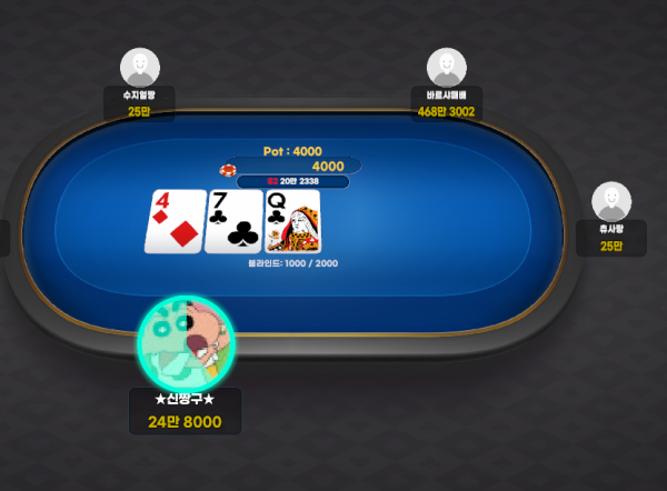 패가 나오기전에 alt tab하고 패가 나올때 다시 들어와보니 흰색카드만 보이고 패가 안 보이네요ㅠ