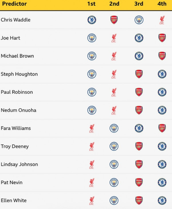 - ‘BBC’ 전문 패널들은 새 시즌 프리미어리그 상위 4팀 으로 리버풀, 아스널, 맨체스터 시티, 첼시 언급