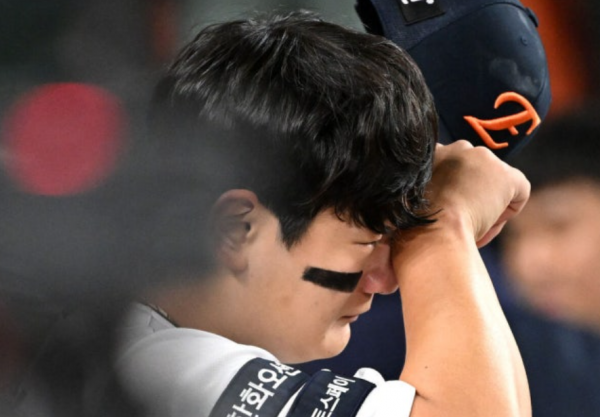 김서현은 경기 후 덕아웃에서 기쁨의 포효와 함께 눈물을 흘리며 오랜 마음 고생을 털어냈다.